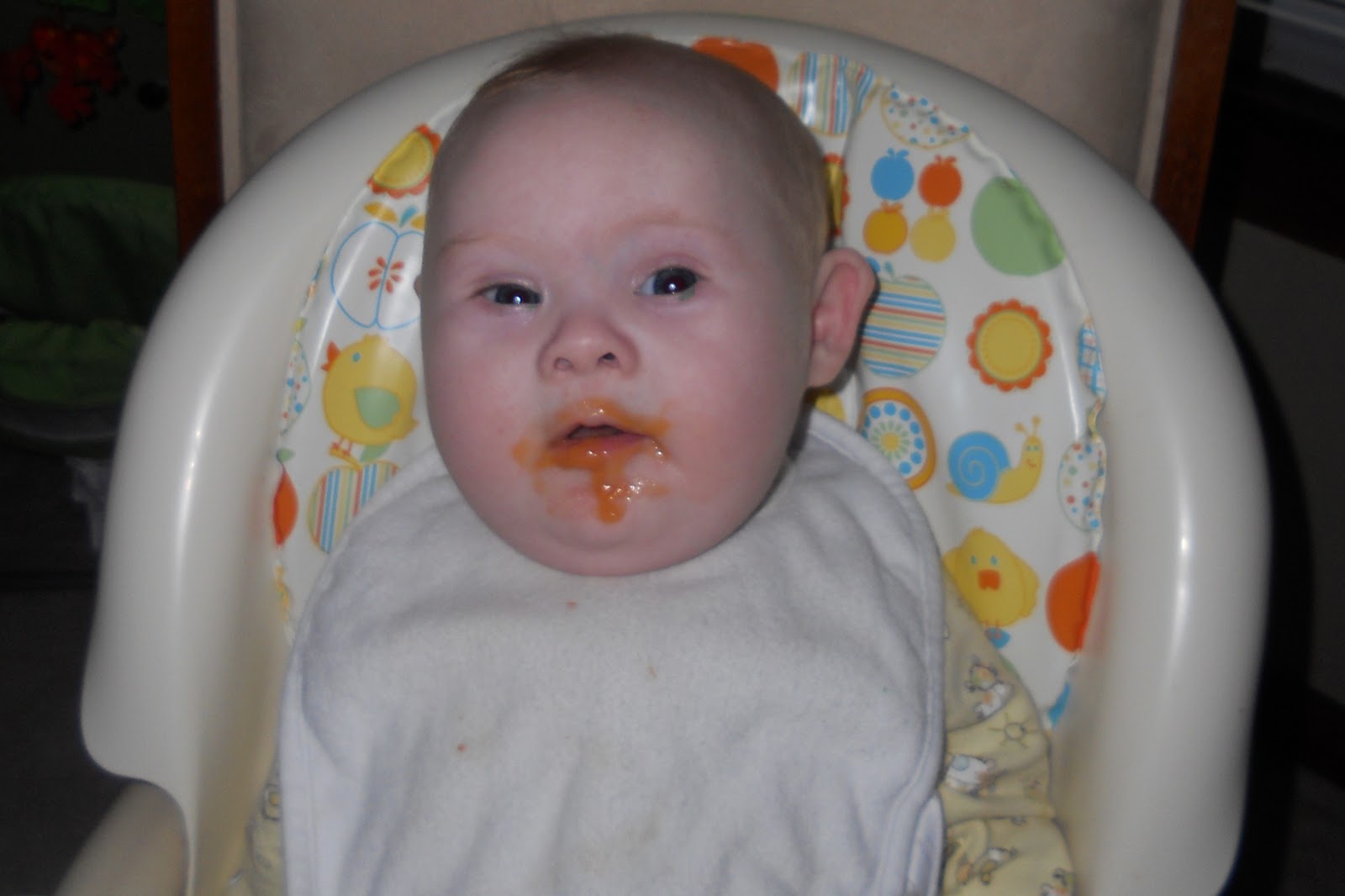 So we started with bananas since he seemed to prefer foods with less flavor impact. He did fine with eating them, but became constipated quickly. Then I tried peaches to alleviate the constipation, but he didn't seem to enjoy eating them because the flavor was so strong. Also, with both of the fruits, he developed a rash again up around his temples while eating. I moved on to sweet potatoes and the rash didn't appear, but he again seemed to behave like the flavor might have been too strong. So finally I got some baby oatmeal cereal and some prune purees. Mixing the two together diminished the flavor of the fruit, and he really seemed to enjoy it! Plus, no rash... success!! Now I have to experiment with the other fruits mixed into the oatmeal to see how he responds. But I'm kind of waiting to see the effect that the current concoction has on his digestion. I need to know if it's slowing things down too much or if he'll be fine.